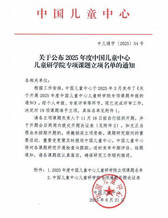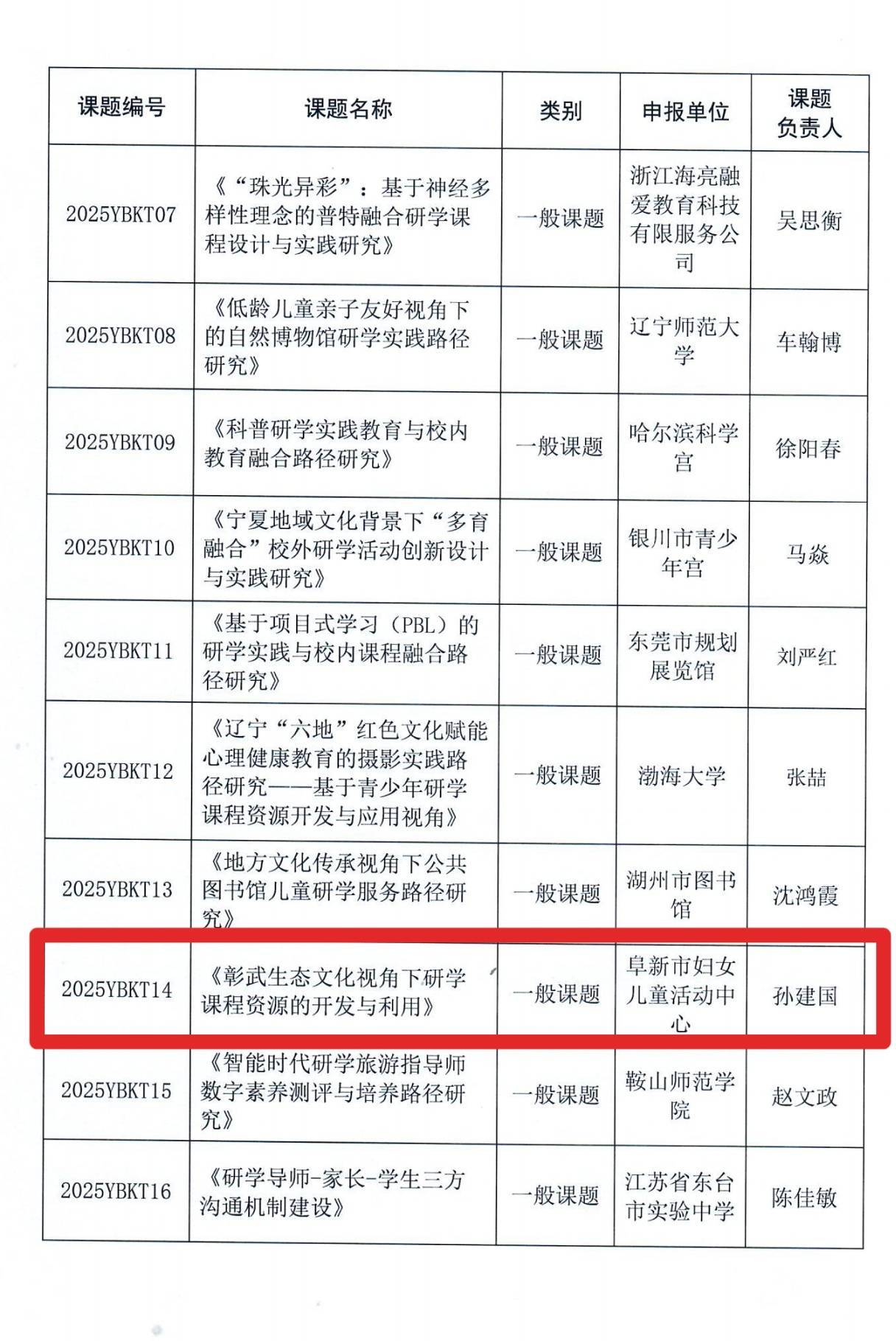 图:《彰武生态文化视角下研学课程资源的开发与利用》成功入选2025年度中国儿童中心儿童研学院立项课题名单(全国共19个)