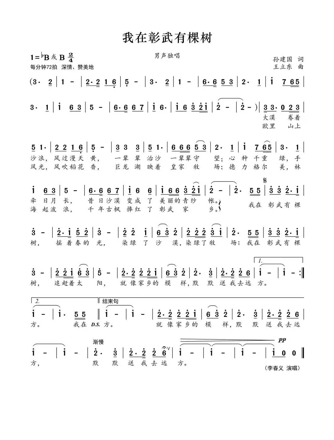 图:《我在彰武有棵树》主题歌曲 作词:孙建国 作曲:王立东 演唱:李春义