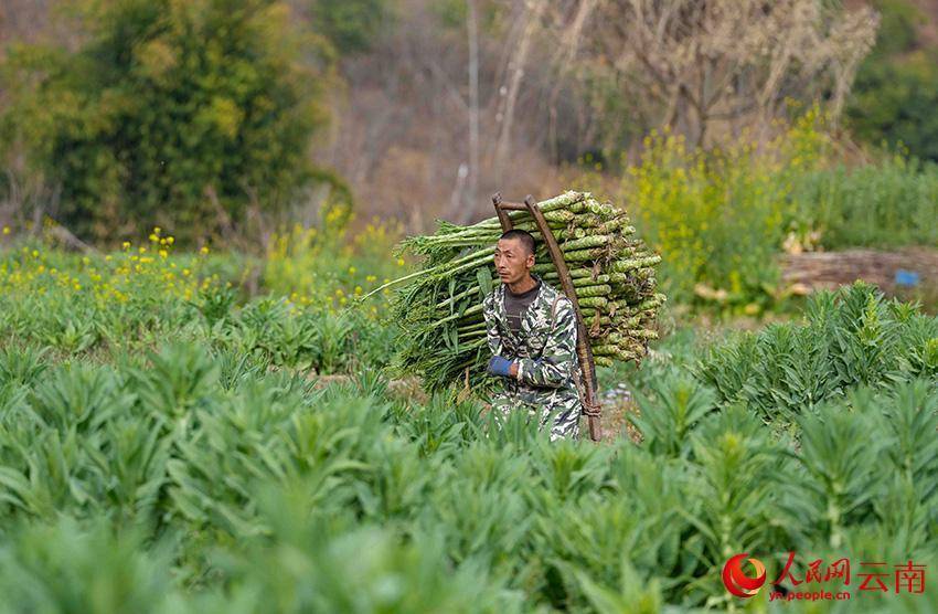 2月25日,云南省漾濞彝族自治县漾江镇桑不老村村民在采收贡菜。人民网记者 虎遵会摄人民网漾濞2月26日电 (记者虎遵会)春暖花开时节,云南省漾濞彝族自治县漾江镇桑不老村连片的贡菜田长势喜人,一株株茎秆粗壮的贡菜青翠挺拔。村民们抢抓农时,忙着采收、去皮、划条、晾晒,田间地头一派繁忙景象。